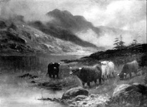 Cattle Watering In A Mountain Loch