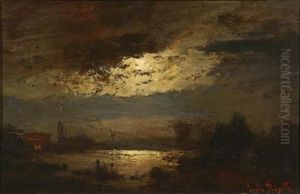 Mondbeschienene Uferlandschaft Mit Gehoft