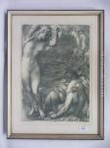 Female Nude Bather In River Landscape