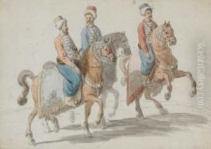 View Of A Clearing By A Lake, With Turkish Figures Before Aruined Temple