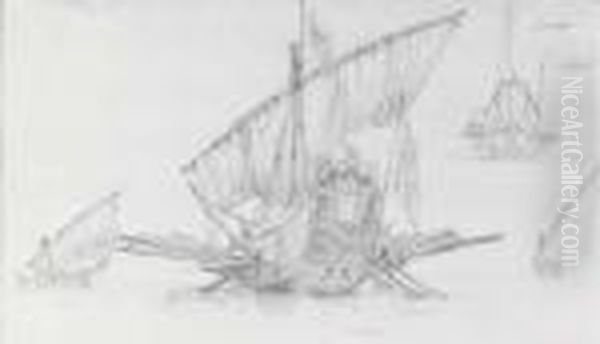 Deux Etudes De Navire Et De Bateaux De Peche