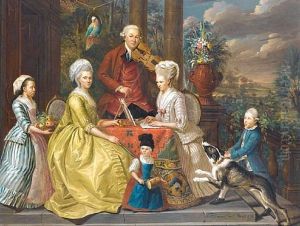 Portrait Of The Van Assche Family Seated In A Loggia, A Landscape Beyond