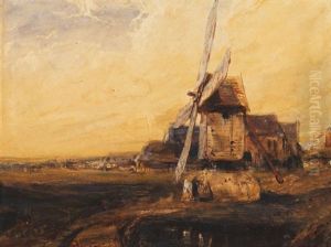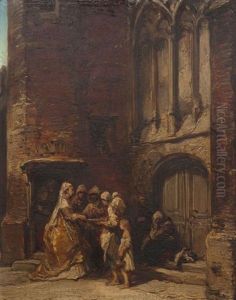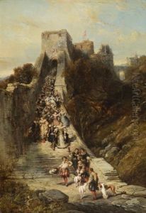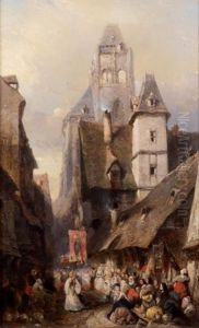 Town Scene With Rustic Watching Over His Horses