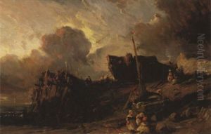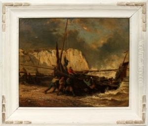 Personnages Et Barque Echoues Sur Un Littoral