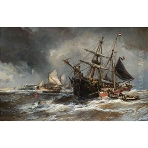 Marine Mit Hollandischem Segelschiff Und Ein Rettungsboot