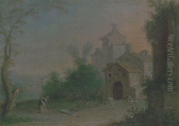 Figures And Animals Resting Before The Walls Of A Town