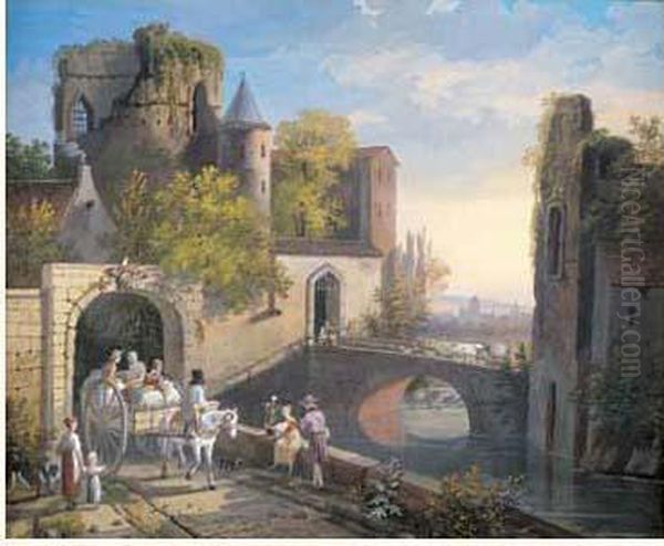Vue De L'entree D'une Ville Fortifiee Pres D'une Riviere