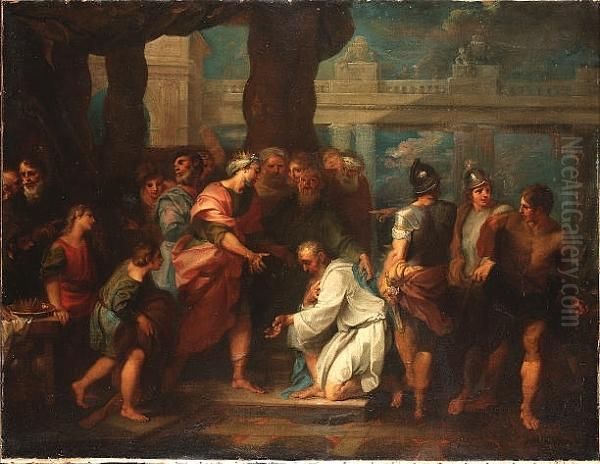 Bring the timeless beauty of Louis Galloche's Evilmerodach Delivering Jehoiachin into your home with a handmade oil painting reproduction. Carefully recreated on canvas by skilled artists using traditional techniques, this piece captures the delicate brushwork, subtle light, and vibrant color of the original masterpiece. With museum-level quality and rich texture, it brings elegance and artistic depth to any space. Enjoy free shipping and make this masterpiece a part of your personal collection.