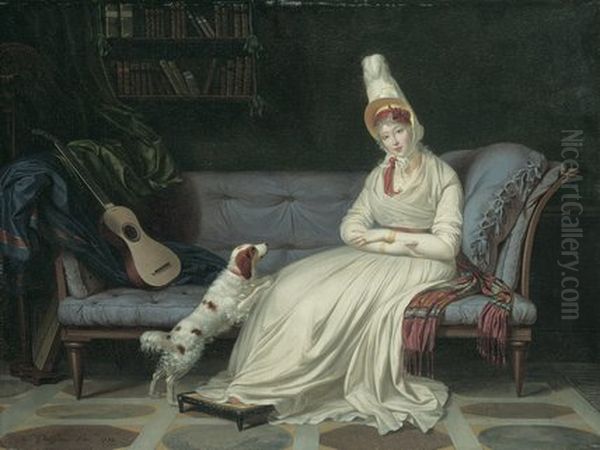 Portrait of Elizabeth, Lady Webster, later Lady Holland, in a white dress with her spaniel Pierrot