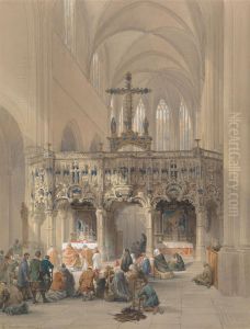 Aside from his lithographic endeavors, Louis Haghe was also a skilled watercolorist. He became a member of the Royal Watercolour Society in 1839 and was its president for a period. His watercolors often depicted architectural and landscape subjects, reflecting his interest in travel and exotic locales, much like the lithographs he produced after Roberts’ sketches.