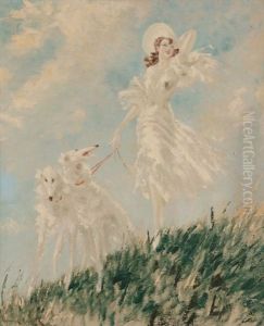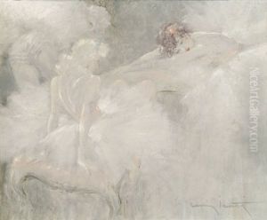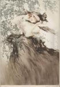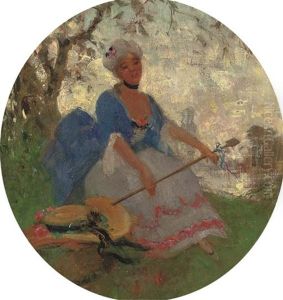 Elegante Dama Con Abanico En Un Palacio Del Folies Bergere