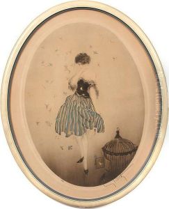 Elegantes Lithographie Ovale