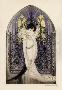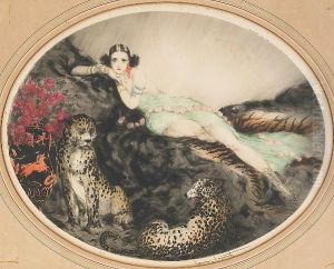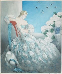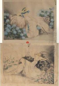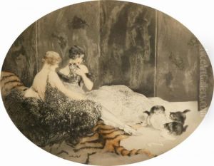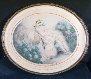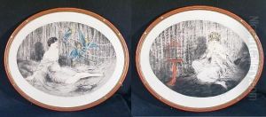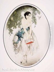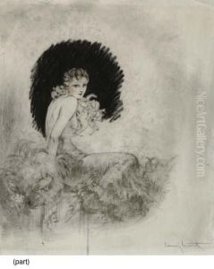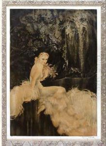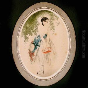 Jeunefemme A La Cruche, Gravure Rehaussee Au Pastel Sur Papier. Signeeen Bas A Gauche Louis Icart. Ecole Francaise. Dim.: 44x33,5cm