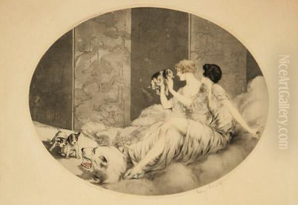Puppies Oil Painting by Louis Icart