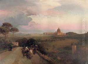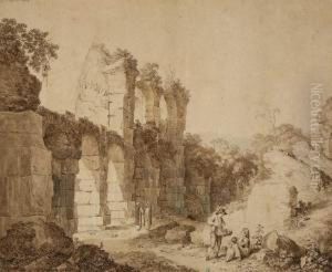 Capriccio View Of The Colosseum, Rome, With Pilgrims Gathering Before Altars