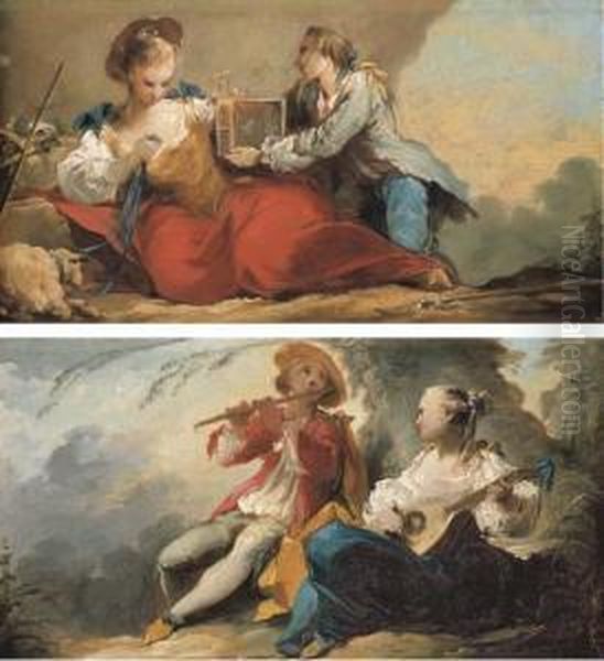Bring the timeless beauty of Louis Joseph Le Lorrain's L'oiseau Prisonnier: A Shepherdess Being Offered A Bird Cage By Ayouth; And Le Duo: A Couple Making Music By A Tree into your home with a handmade oil painting reproduction. Carefully recreated on canvas by skilled artists using traditional techniques, this piece captures the delicate brushwork, subtle light, and vibrant color of the original masterpiece. With museum-level quality and rich texture, it brings elegance and artistic depth to any space. Enjoy free shipping and make this masterpiece a part of your personal collection.