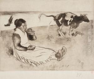 Legrand's art was marked by his distinct use of line and his ability to capture the ephemeral moments of Parisian life. One of his notable series of etchings is 'Les Petites du Ballet,' which focused on the young dancers of the Paris Opera Ballet. His depictions of cafes, brothels, and the demimonde of Paris spoke to the changing social dynamics of the time.