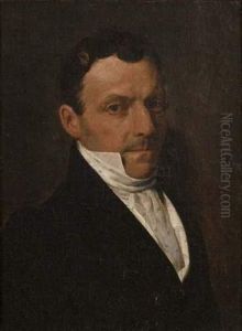 Portrait Of A Man, Half Length, Wearing A Black Jacket With A White Cravat
