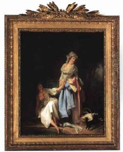 An Elegant Interior With A Young Man Conversing With An Old Woman, Accompanied By A Courtesan (le Melon)