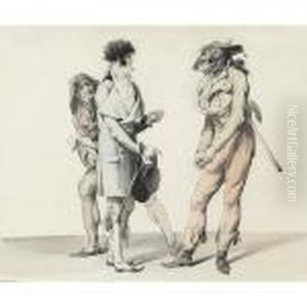 Les Croyables Au Perron [ ; Les Croyables Au Perron ; Black Chalk, Pen And Black Ink ; Grey Wash And Watercolour]