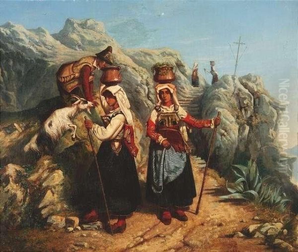 Robert, Leopold . A Goatherd With Italian Countrywomen On A Mountain Pass