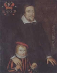 Portrait Of A Gentleman Wearing A Dark Tunic, With His Right Hand Resting On A Boy's Shoulder