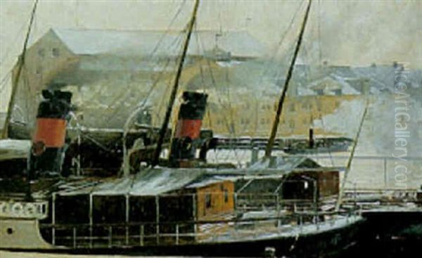 Fra Havnen I Christiania, (oslo) I Forgrunden Dfds Dampskib