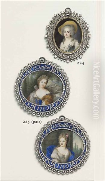 A Young Lady Called Mademoiselle Victorine De Chastenay-lanty, In White Dress With Laced Green Bodice And Fichu, Posy Of Forget-me-nots Pinned...
