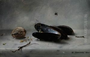 Nature Morte Aux Peches Et Citron Sur Un Entablement