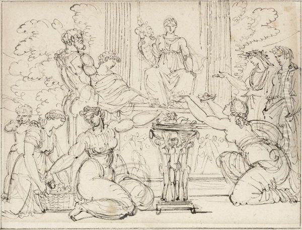Allegorical Scene, Woman Offering Gifts To The Goddess