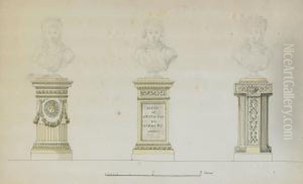 Studie For Gustavianska Skulpturplintar Med Dekorer Av Hertigkronorsamt Lilla Riksvapnet