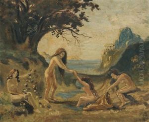Bring the timeless beauty of Louis Michel Eilshemius's Frolicking Nymphs into your home with a handmade oil painting reproduction. Carefully recreated on canvas by skilled artists using traditional techniques, this piece captures the delicate brushwork, subtle light, and vibrant color of the original masterpiece. With museum-level quality and rich texture, it brings elegance and artistic depth to any space. Enjoy free shipping and make this masterpiece a part of your personal collection.