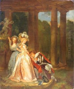 Trinquesse's artwork was particularly noted for its delicate portrayal of fabrics and the sophisticated attire of his subjects, reflecting the fashions and social mores of the time. He exhibited at the prestigious Salon de Paris, where artists showcased their work to potential patrons and critics. His paintings were well-received, and he gained a reputation for his refined approach to composition and his ability to render figures in a naturalistic yet graceful manner.