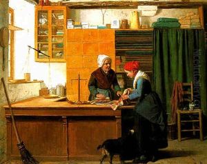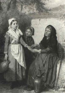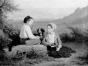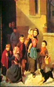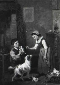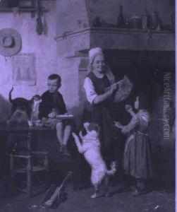 The New Mother/interior Genre Scene With Children And Dogs
