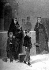 In Einer Kalten Winternacht Bittet Eine Familie Um Eine Milde Gabe