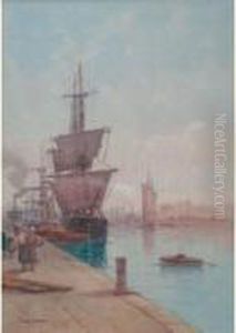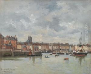 Etienne Bateaux Dans Le Port Huile Sur Panneau Signee En Bas A Droite