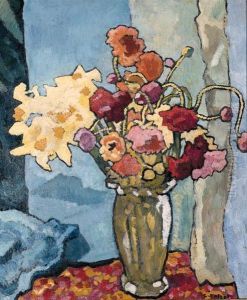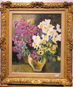 Giroflees Et Narcisses Dans Une Cruche Verte