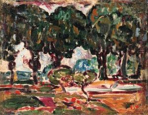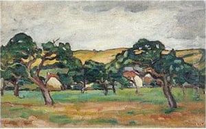 Peupliers Au Bord Du Ruisseau. Huile Sur Toile Signee En Bas A Droite
