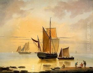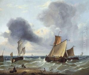 A Dutch Barge Riding At Her Anchor In A Swell Off The Coast