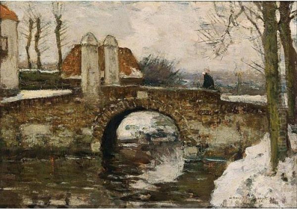 A Figure On A Bridge In A Winter Landscape, Laag Soeren
