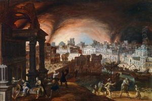 The Fall Of Troy With Aeneas Carrying Anchises From The Burning City