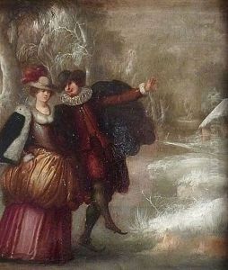 A Palace Interior With Elegant Couples Courting At A Ball