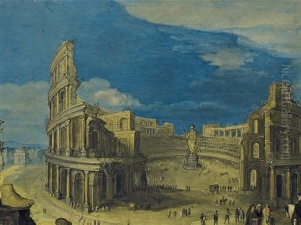 Le Colisee (+ La Tour De Babel; 2 Works) Oil Painting - Louis de Caullery