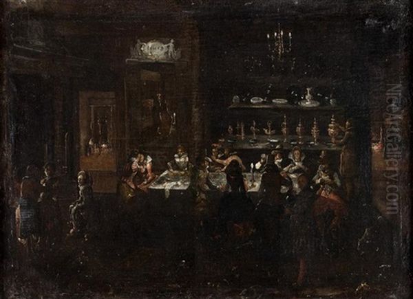 Scene De Banquet Nocturne Oil Painting - Louis de Caullery