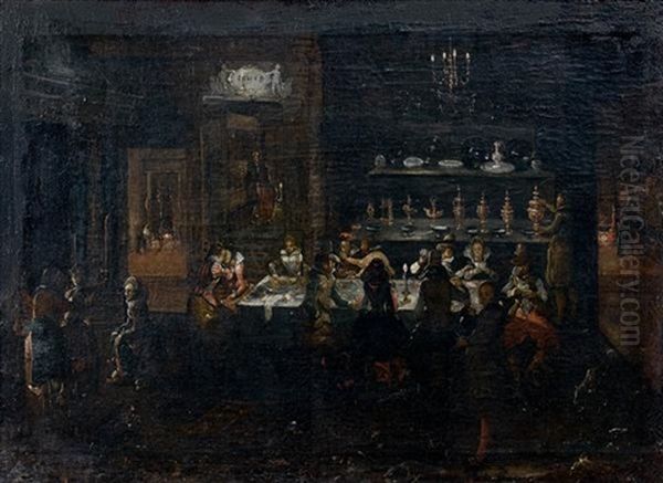 Scene De Banquet Nocturne Oil Painting - Louis de Caullery