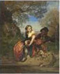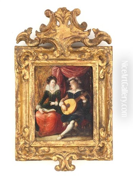 Two Of The Five Senses: Elegant Figures Embracing; And An Elegant Couple Making Music (2)