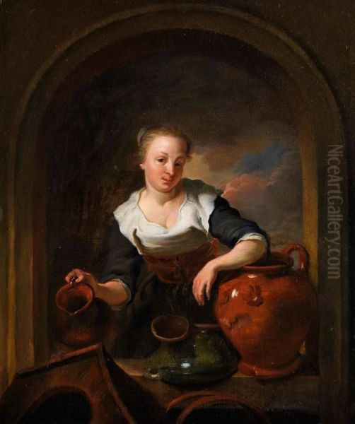 Junges Madchen Mit Krugen Im Steinernen Fensterrahmen