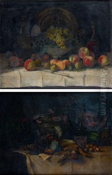 Nature Morte A La Coupe De Raisins, Aux Peches Et Prunes Disposees Sur Un Entablement