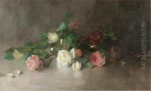 Still Life Of Roses Oil Painting by Louise Ellen Perman