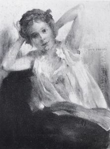 Female semi-nude in chair. (The actress Gertrud Eysoldt)